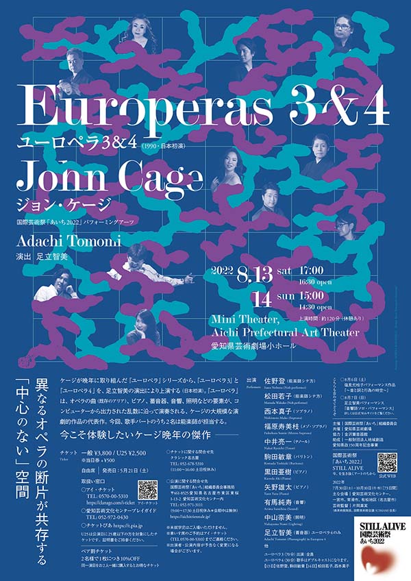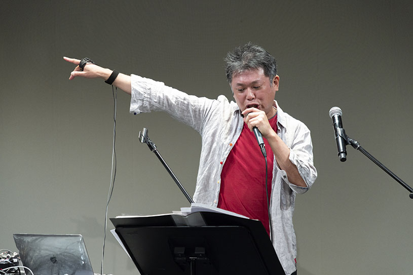 パフォーミングアーツ公演では、ジョン・ケージの晩年の作品である『ユーロペラ3&4』を演出する。また音響詩をはじめとするソロ・パフォーマンスを行う。
