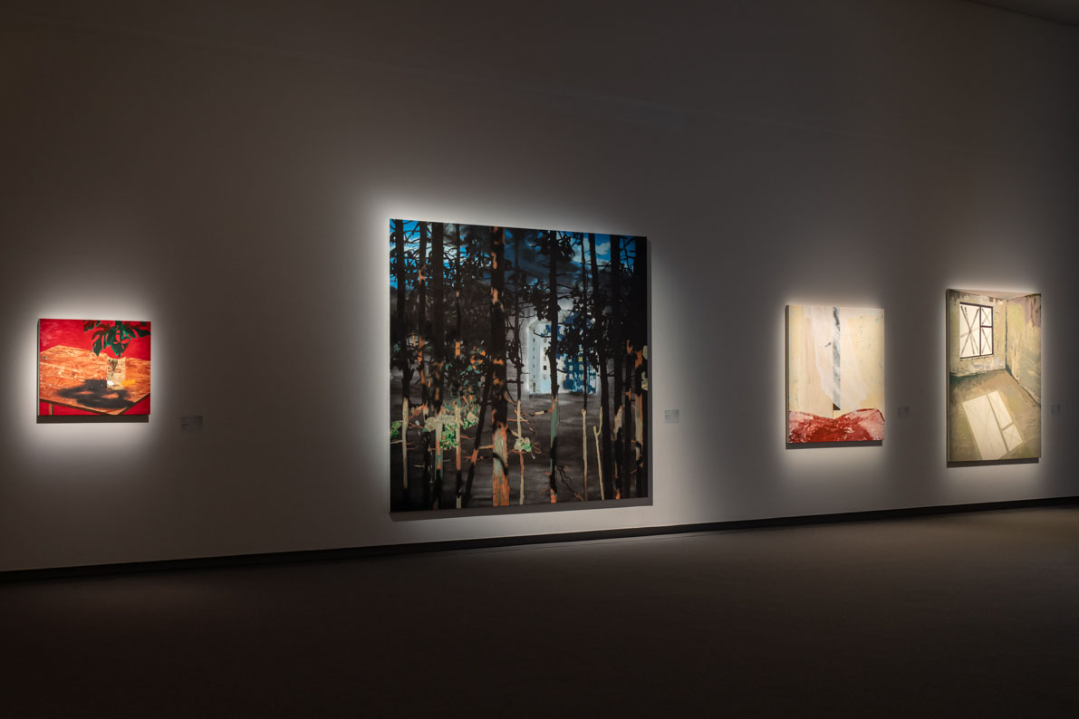 サーミの絵画には、困難な時代を生きた故郷イラクでの記憶やトラウマが描かれていますが、それは直接的な図像ではなく、絵画空間のなかで連鎖的に想像されるイメージです。《難民キャンプ》(2021)では、まさに暗闇から抜け出した先の明るい未来を暗示するように、暗い森の奥に光のあたる建物が見えます。また《スティル・アライブ》(2020)は、「いまだ生きている」のはどこの誰なのかを考えさせます。不可視の存在を想像する絵画。それは現実世界に見えているものよりも、深く私たちの心に響くのです。