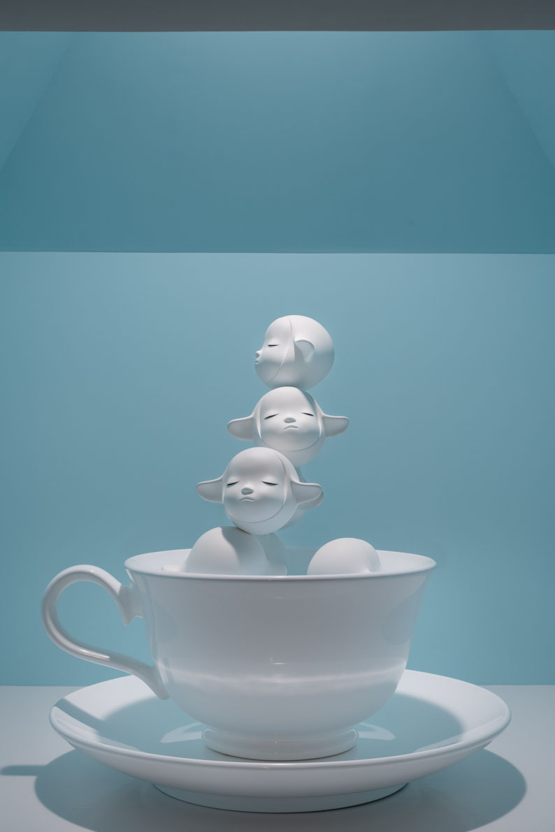 旧名古屋銀行一宮支店の建物を改装した「オリナス一宮」は、神々へ祈りを捧げる真清田神社への参道沿いにあります。ここで展示される《Miss Moonlight》(2020)の少女はまぶたを閉じ、奈良作品のなかでもとりわけ慈愛に満ちた表情で、静かに祈りを捧げているようにも見えます。「月光の少女」を意味するタイトルどおり、髪の毛にはこの世の様々な輝きが投影され、美しい色に溢れています。