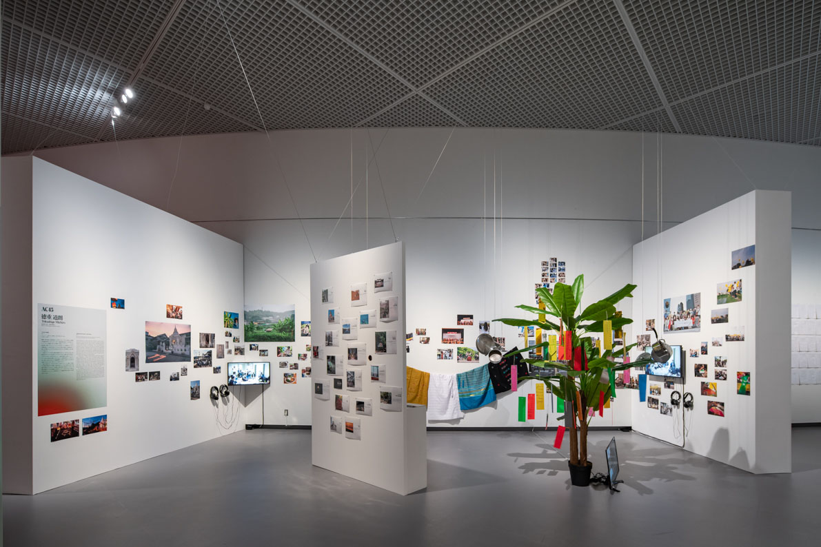 展示会場では、これまでに出会った在日ミャンマー人の願いや愛知での発見が書かれた短冊、民族衣装ロンジーなどの展示のほか、映像や写真によってリサーチ活動や交流の様子を紹介しています。普段は見過ごしてしまう事象に目を向け、メンバーがなんとかして異なる文化を持つコミュニティと連帯接合しようと議論を重ねる様子が記録されています。