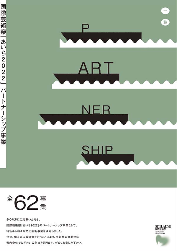 国際芸術祭「あいち2022」と相互に広報協力を行っていただける文化芸術事業を、国際芸術祭「あいち2022」パートナーシップ事業として募集し、双方の事業の盛り上げを図ります。