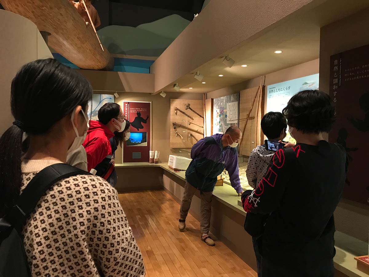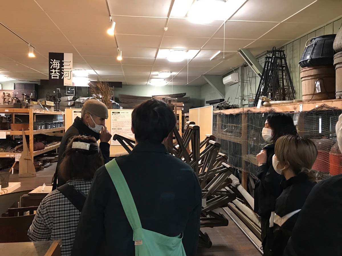 豊川河口域の浅海文化や里海と人々の暮らしについてレクチャーを受ける。大学内にある生活産業資料館も見学