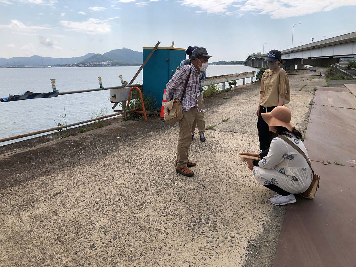 風景を見渡しながら、風や鳥の声、生活音をBGMに“民話”に耳を傾けることで、時間軸のレイヤーや新たな土地同士の繋がり、距離感などが見えてきて、自分の身体を通して土地が立体的に立ち上がってくるような感覚を覚える。また、語り手たちの話ぶりや視点、語る内容が違うことに気づき、改めて「人」という個人の身体を介して伝言ゲームのように紡がれてきたものだと感じる。畑ばかりの印象だった土地が、かつては船が行き交う大津(湊)であり繁華街だったと知って驚く。埋め立てや移動手段の変化による風景の変化の大きさを実感。