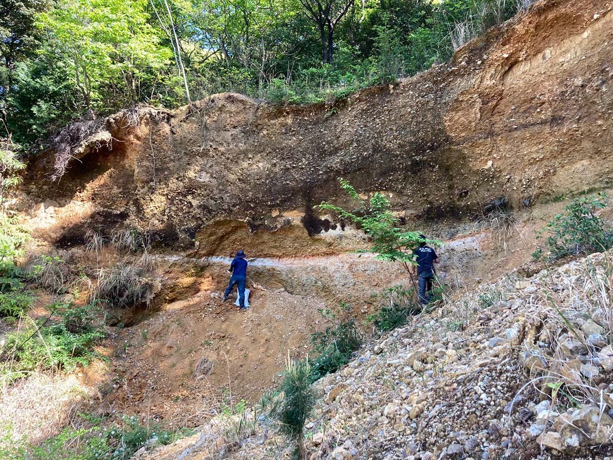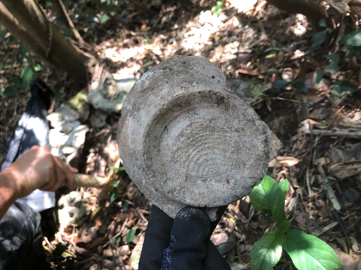 古窯趾跡を巡り、土を採集して、成形の実験をする。
