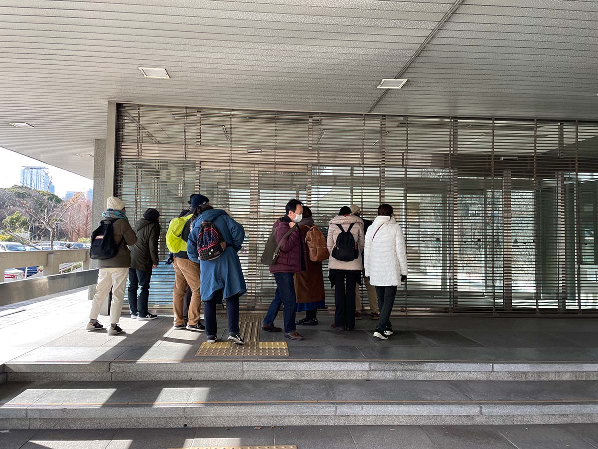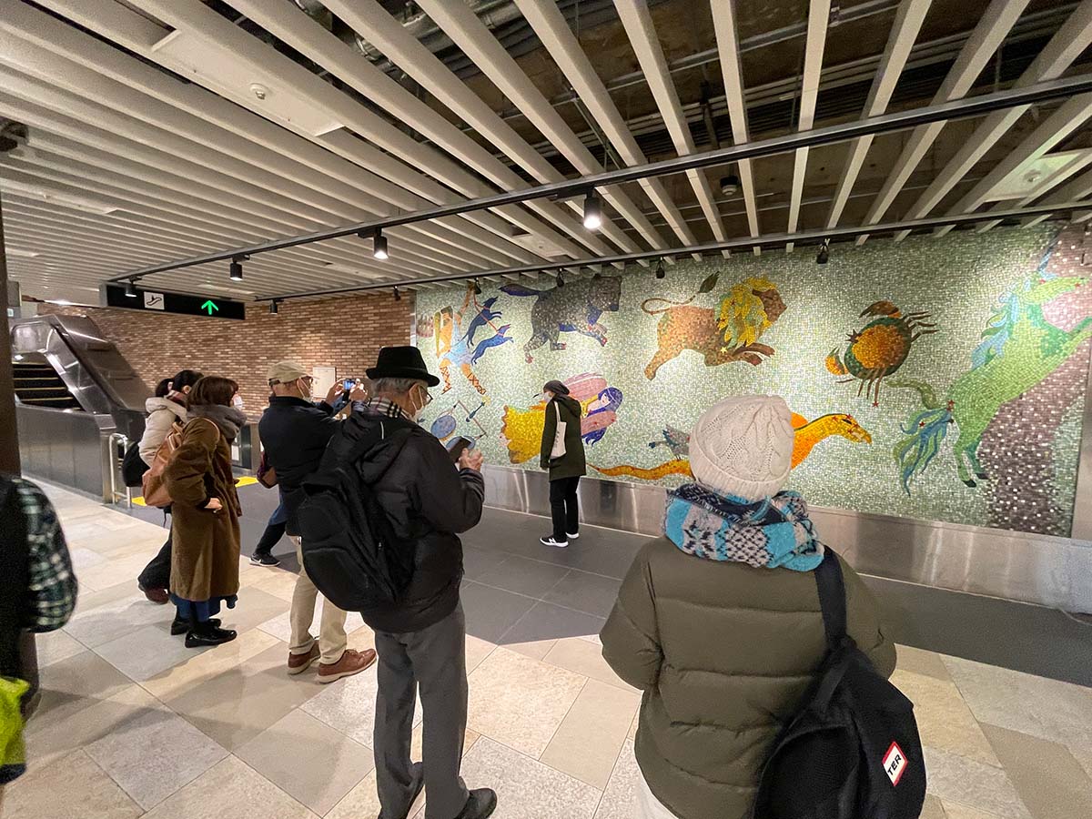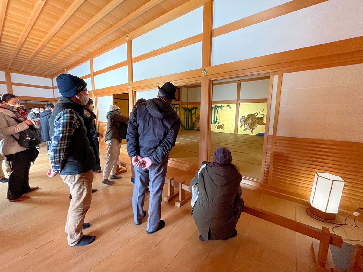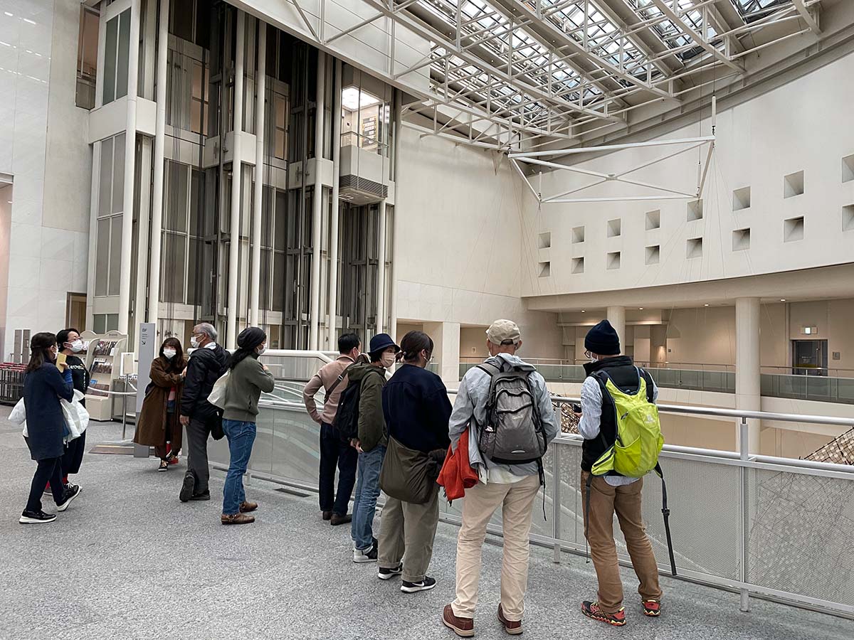 アートラボあいちに集合し、前回の振り返りや今日の流れの確認すると、早速名古屋城の障壁画を見るために全員で移動。道中、メンバーが愛知県庁西庁舎1階にも矢橋六郎が手掛けたモザイク壁画があると言い出したので立ち寄り、閉庁日の県庁舎を外から覗き込む。名古屋城では豪華絢爛な欄間や建具、襖がどんな素材でどのように描かれているのかじっくり見学した。その後は名古屋市美術館で開催中の常設企画展で北川民治やメキシコの壁画を鑑賞した。アートラボあいちに戻ると、前回出た宿題を一人ひとり発表した。
