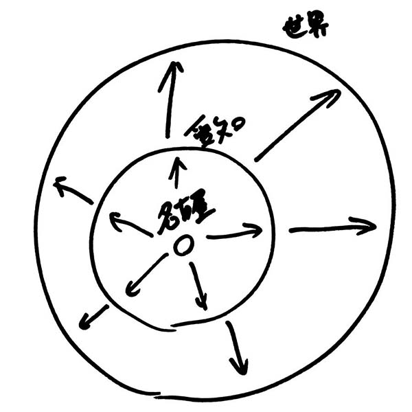 さらに世界にまで拡張するとこうなります。これも一つの世界認識ですが、ちょっと天動説っぽいですね。