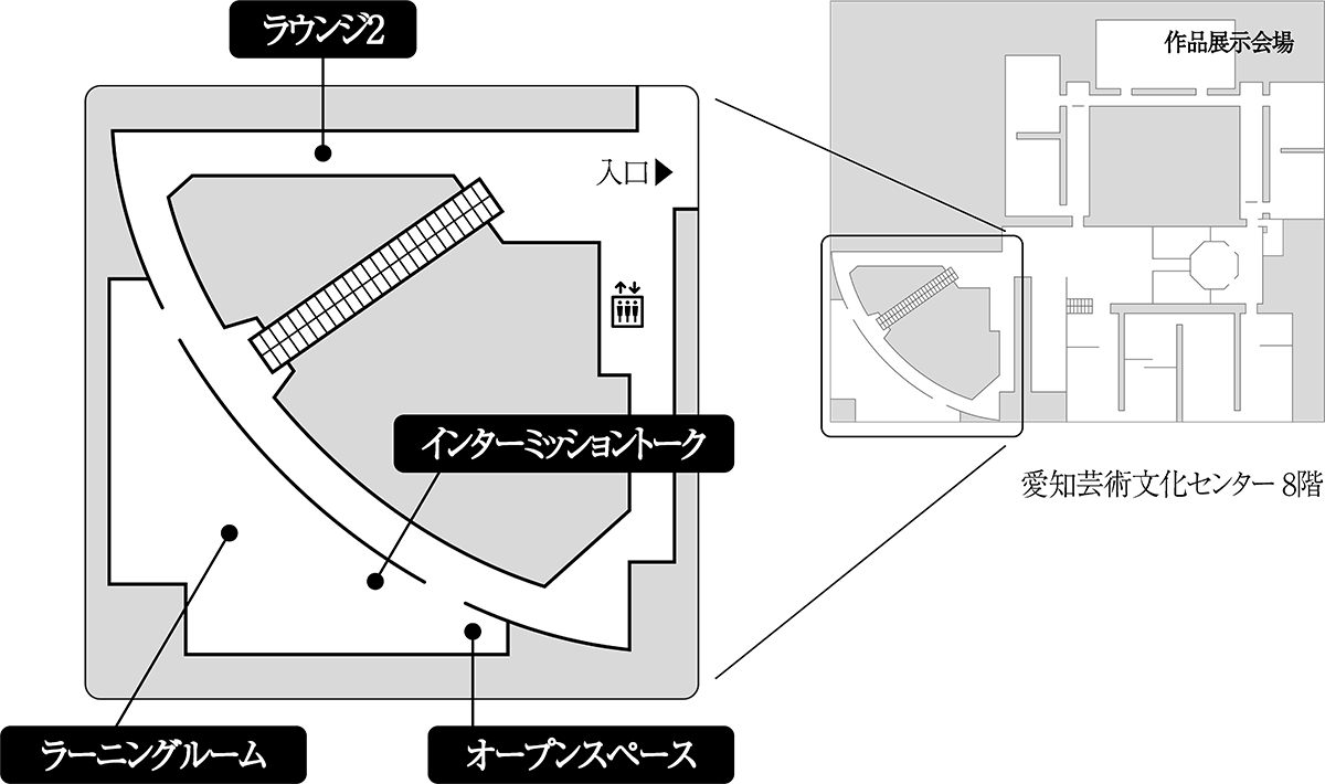 プログラム実施時以外はレクチャーのアーカイブ映像を上映したほか、「ラウンジ2」と同様に憩いの場としての働きをしました。