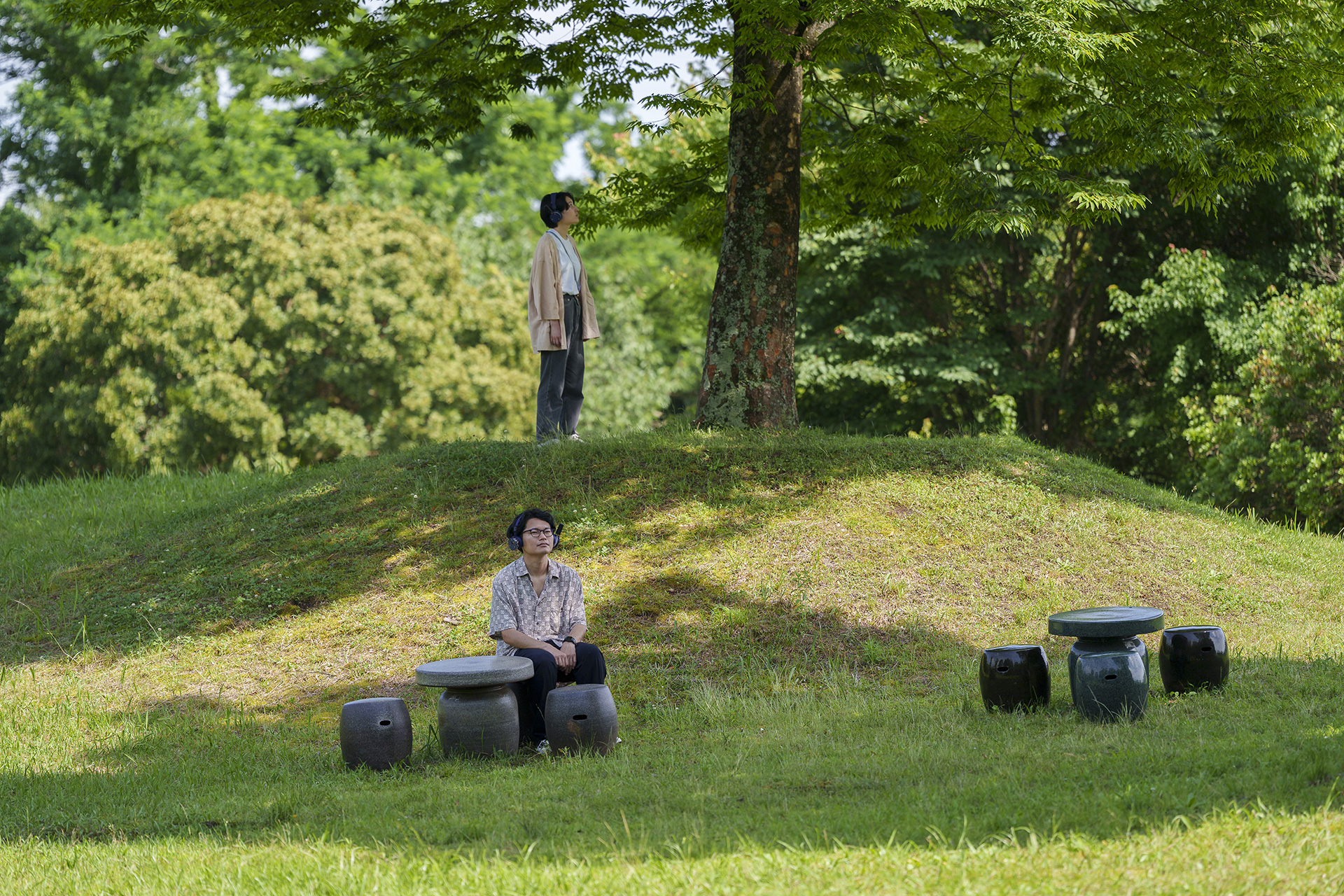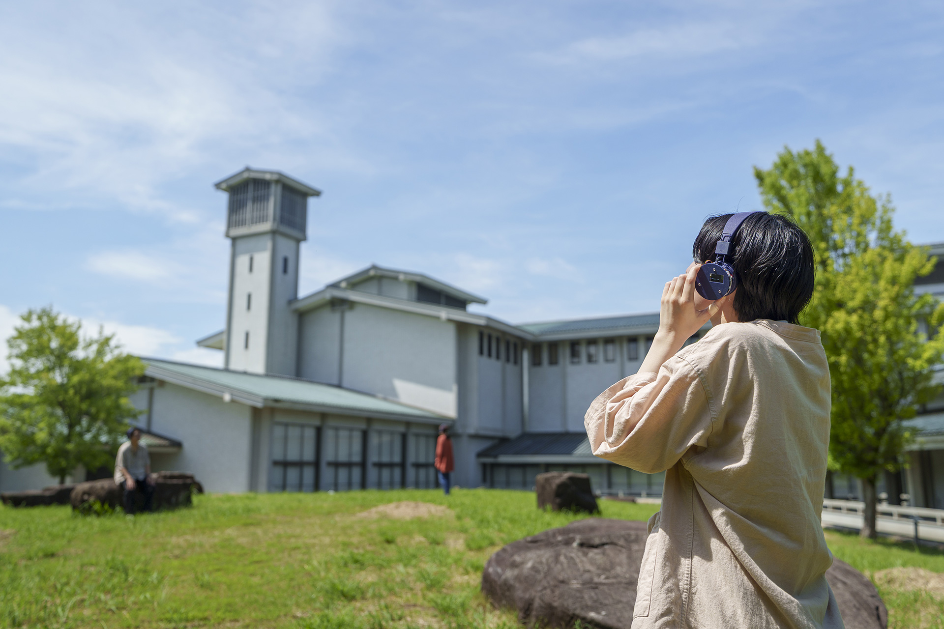 瀬戸の土、水、火、植生、まちや人々から採集した音で構成する仮想世界が、愛知県陶磁美術館の広大な芝生広場の自然風景に重なり、ヘッドフォンを着用すると音の野外彫刻が立ち上がる。精密なGPSと立体音響技術により、現実と仮想の境界が揺らぐ特別な体験。