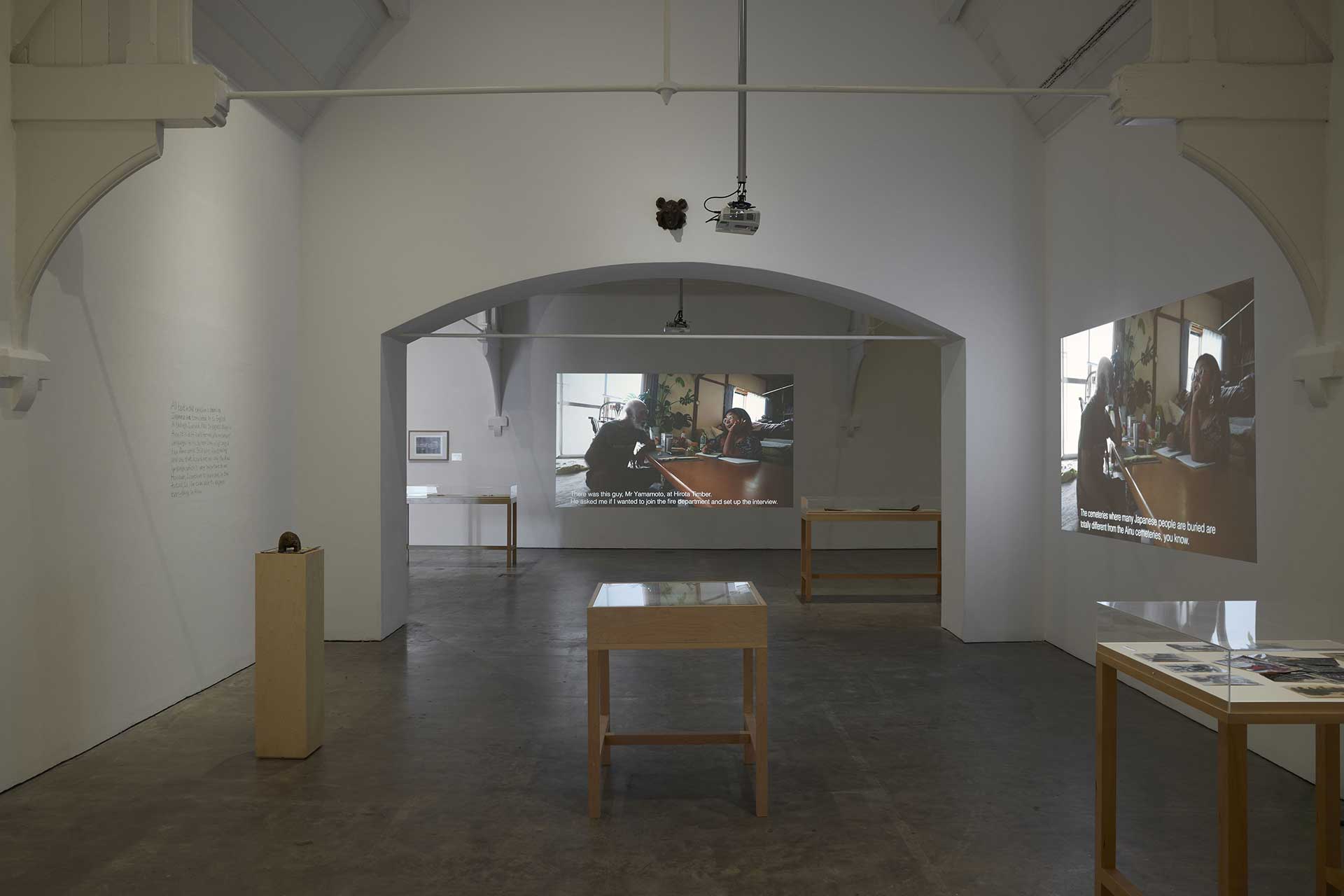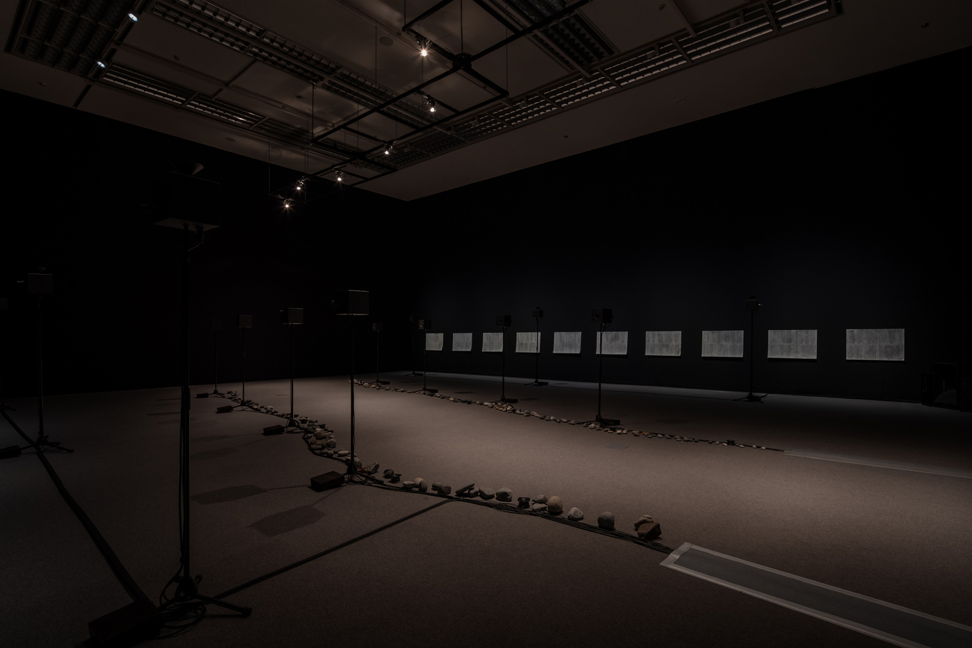 作品の主題には、マユンキキの祖父・川村カ子ト(1893-1977)の存在が大きく影響しています。旭川アイヌのリーダーであり、測量技師として活躍した彼は、断崖絶壁の天竜峡〜三河川合間の開通を命がけで監督した功績によって語り継がれています。マユンキキは、自身の祖父が日本近代化の一翼を担い評価される一方で、その日本の近代化によってアイヌがもともと住んでいた土地が収奪され、言語や生業、生活慣習の同化を迫られてきた歴史と、本作のリサーチを通じて向き合い続けます。「上流と下流、先祖と子孫──不可逆とされる流れに橋をかけ、穴を穿ち、道を通す試み」として、本作をパフォーマンス作品《クㇱテ》と合わせて発表します。インスタレーションに加え、歌、映像、パフォーマンスなど、マユンキキの多様な表現手法にもご注目ください。
