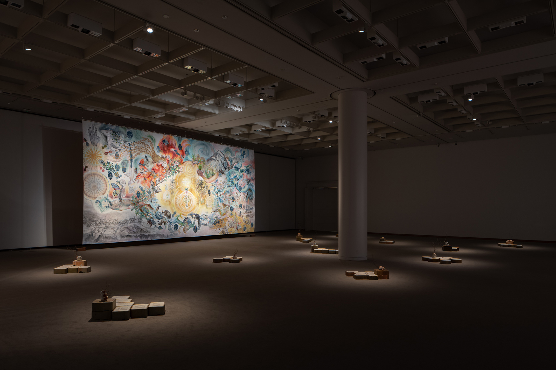 大小島の作品のなかには、森や大地、火山、海、鉱物、泥といった地球環境とともに、鳥類、蛇、鯨、粘菌、霊長類、鹿、キメラ、胎児といったモチーフが登場します。鑑賞者は互いに絡まり合い、循環する生命のイメージを通して、多様な環境や他者の視点と交感し、「人間以上のもの」に生成変化するアーティストの心象風景に触れることができます。