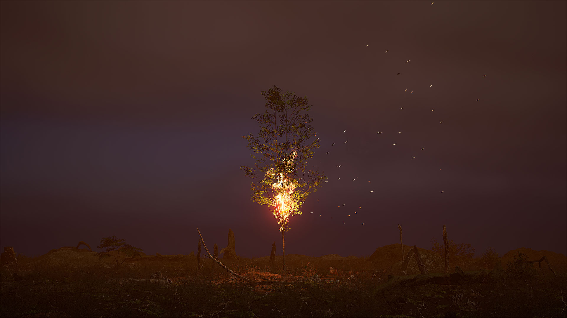 展示室に立ち現れる部屋は、ゴムの木や天然ゴムのシートで構成され、ゴムの樹液採取跡を思わせるヘリンボーン模様が外壁に刻まれています。部屋の中には伝統的打楽器のリズムが響き、3Dアニメーションでつくられたゴム農園を舞台にした映像に、自ら燃え上がる樹木など「熱」を象徴するイメージが映し出され、AIにより生成された「オッパリ」をドローンが広めています。植民地期のマラヤ(マレー半島南部およびボルネオ島北部)に南インドからきた年季奉公の移民が持ち込み、プランテーション経済の暴力により命を落とした労働者たちの死を悼むために歌われた「オッパリ」は、テクノロジーを介して再演され、非人間的な存在や土地の記憶と交感する儀礼として立ち上がります。ディアは、歴史の空白や抑圧された声に想像力で光を当てて新たな物語を生成し、私たちが歴史と向き合うとともに、記憶を未来へと継承する新たな方法を提示しています。