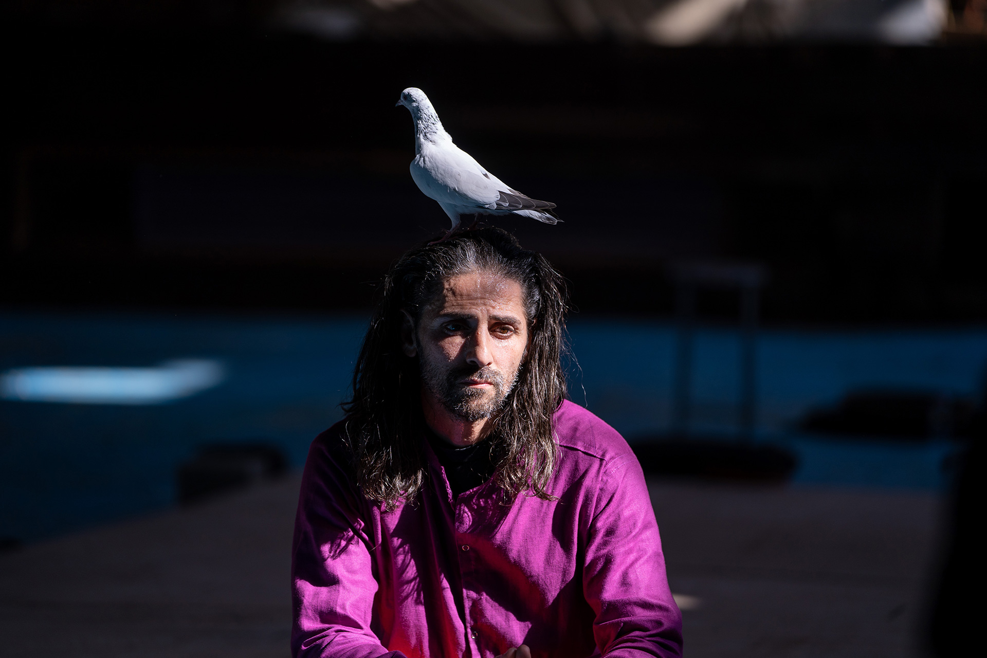 本作は、2023年の第15回シャルジャ・ビエンナーレで発表され、フェスティバル・ドートンヌ、カナル・ポンピドゥセンター(ブリュッセル)などで上演。その詩的で繊細な表現は、世界各地で「共に生きること」の本質を問い直してきた。都市空間のあちこちに根付く生命である鳩と人間が交差する本作に立ち会うとき、私たち人間は自らを特権的な存在とせず生き物との新たな関わりを見出すことができるのか?人間中心の視点を超え、偶発的で不確かな存在との新たな関係を切り開く。
