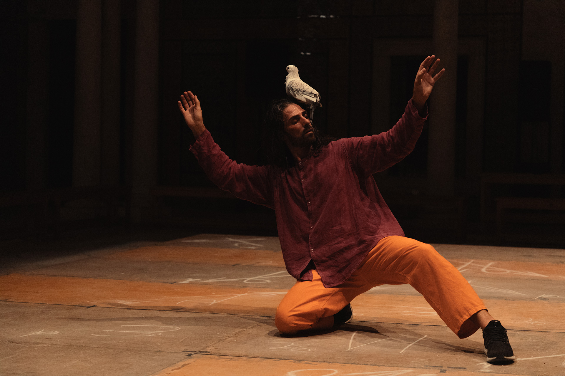 チュニジア出身のセルマ・ウィスィとソフィアン・ウィスィによる『Bird』は、ある日、ウィスィ兄妹が廃墟となった元映画館を棲み処とする鳩と出会ったことから着想を得た作品。その時、かつて人とその物語のために存在した空間が、他の生き物の聖域へと変化した現象を目の当たりにし、パンデミックの隔離経験を経た私たちが、どうすれば再び自然と共生できるのか?という切実な問いが生まれたという。舞台上では、ダンサーと鳩が同じ空間を共有し、互いの存在を尊重しながら身体による予測不能な対話を紡ぐ。