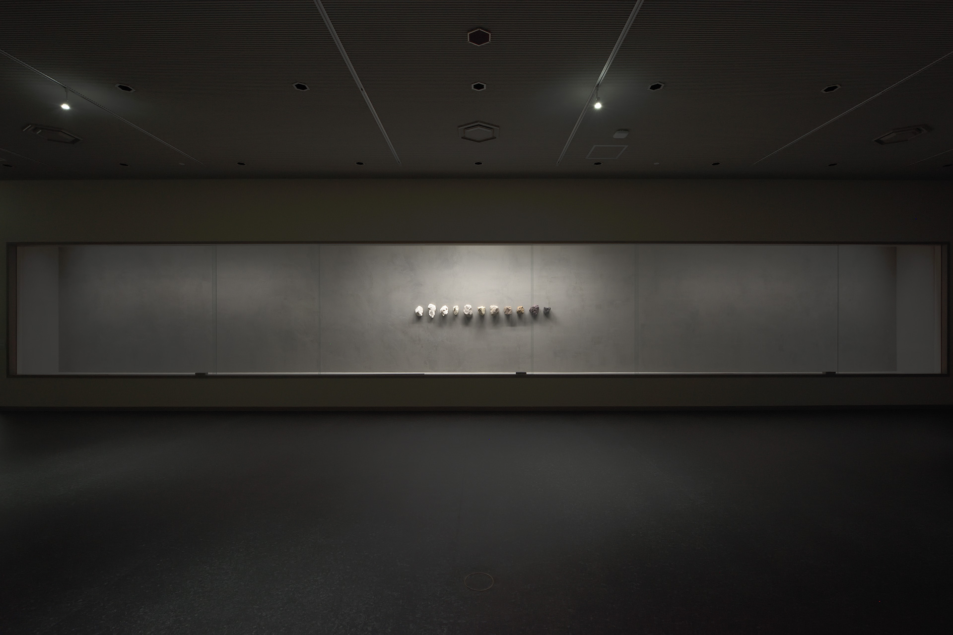 壁に施された塗料は名古屋周辺で採取された石炭灰を使用しており、その上に陶の作品が展示されています。