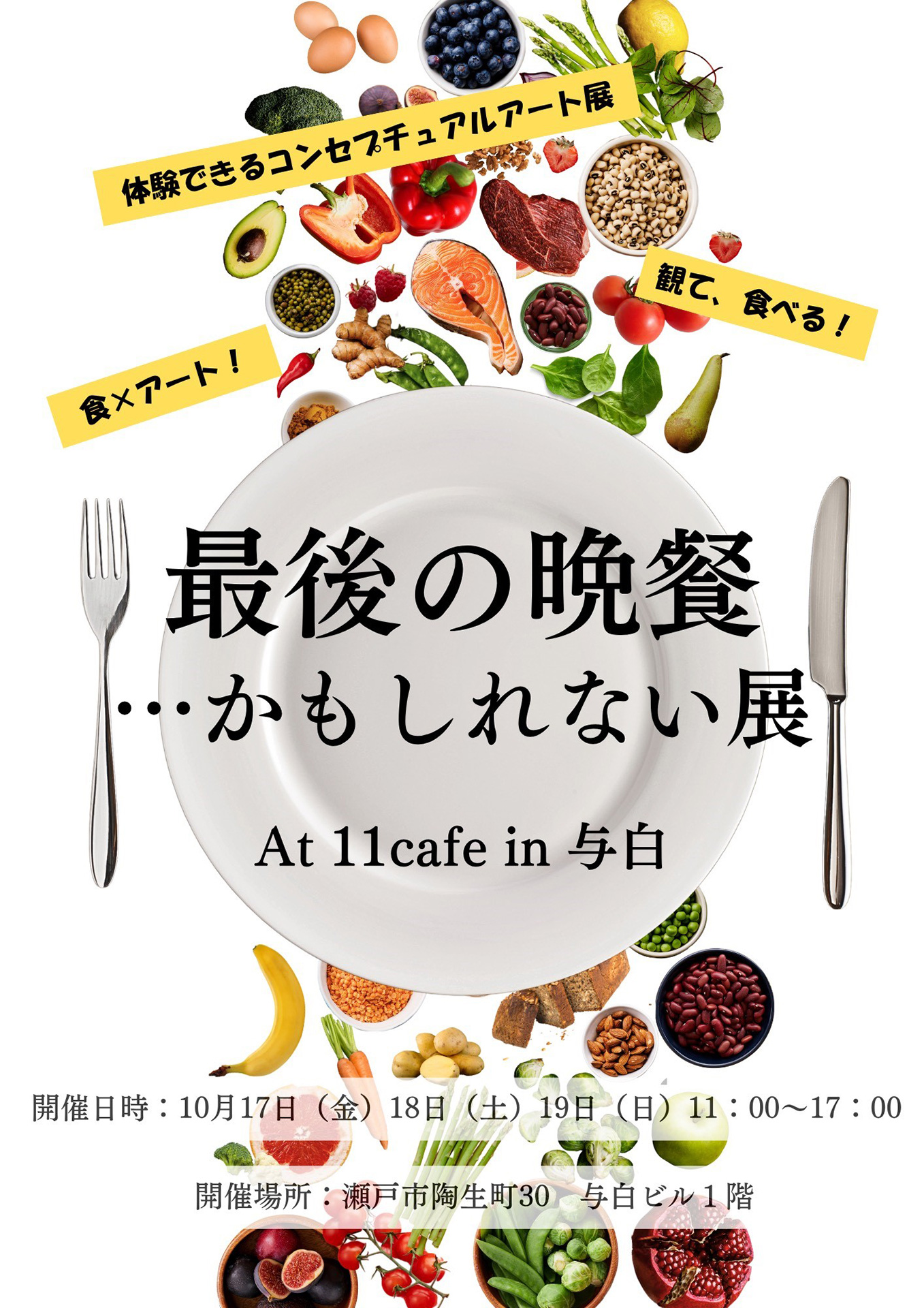 『最後の晩餐』というテーマで、さまざまな分野で活動している方がつくった作品を11cafeで展示、さらに料理として再現し、メニュー提供しています。