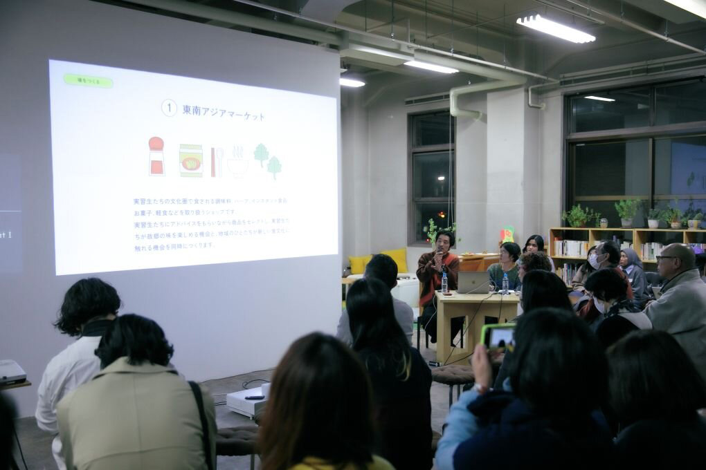 海外の人が地域に入り込むことは、「さまざまな文化と出会う」機会が生まれることです。これまで全く触れてこなかったものが日常に入ってくることで起こるインパクトをポジティブに捉え、新しい文化や営みが生まれることを期待してプロジェクトに取り組んでいるという阿部さん、児玉さん。技能実習生(以下、実習生)は期間限定の労働力とも言えますが、「個人」として地域住民も含めて良い関係を築くことでみんなが「おもしろくこのまちで暮らしていくこと」ができるのではないかという考えから、実習生と地域住民の接点・出会う場所である「わくせい」を構想しました。多様な人々が暮らすひとつの惑星のように、様々な背景の人々が「わくせい」に集うことで多様な接点が生まれることを目指しています。プレゼンテーションでは、その場を立ち上げるためにはじまった「わくせいプロジェクト」の活動の様子、課題までが紹介されました。