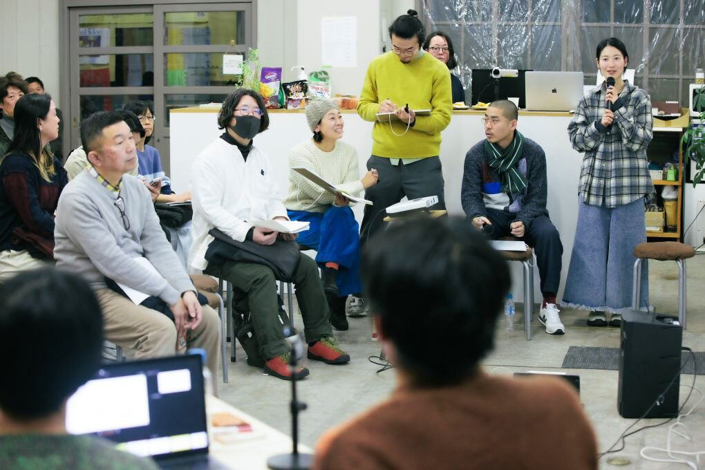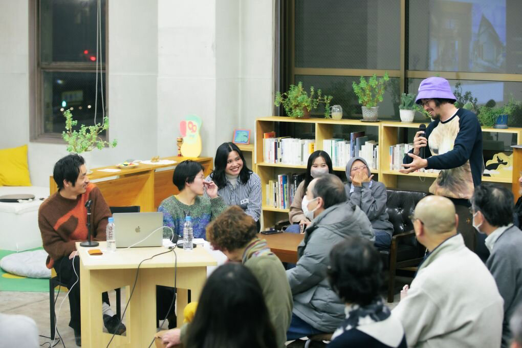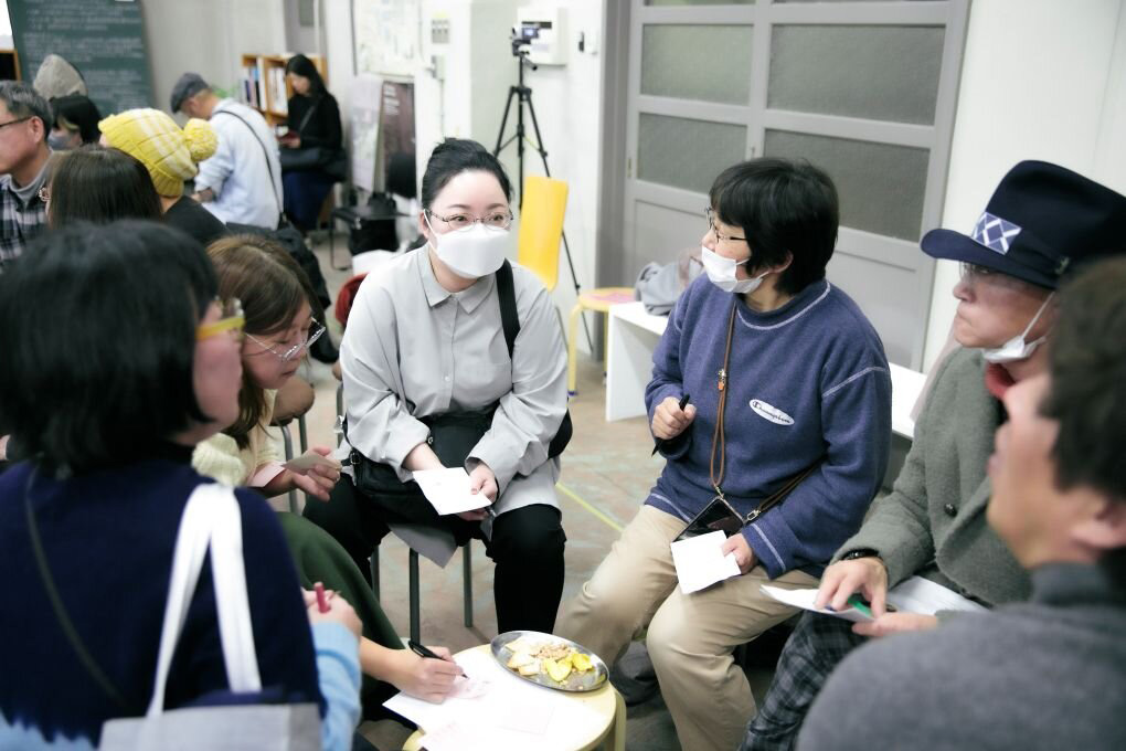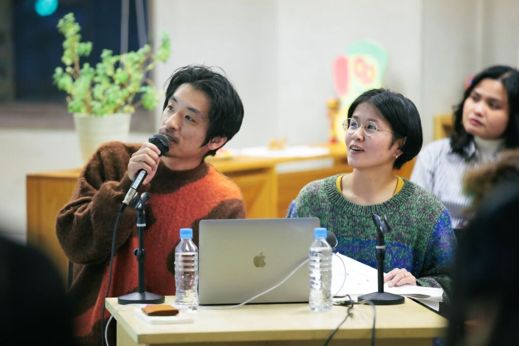 はじめにゲストの活動を紹介するプレゼンテーションからはじまりました。ゲストにお招きしたのは阿部航太さんと児玉美香さんのお二人。デザイナーとして「あいちトリエンナーレ2013」にも関わったことがある阿部さんはデザイン事務所を独立後、フリーランスのデザイナーとして活動しながら、デザイン・文化人類学を指針にアートプロジェクトなどに携わっています。児玉さんは「あいちトリエンナーレ2010」に関わったことをきっかけに、まちと人、アートが関わる活動に興味をもち2014年から2022年まで名古屋市港区のまちづくり協議会で多様な視点をもちながらまちと関わってきました。阿部さんと児玉さんはパートナー同士でもあり、2022年に「地域おこし協力隊」※1として高知県土佐市に移住し、土佐市が掲げていた「国際交流:海外からの技能実習生と地域住民との交流づくり」をミッションに「わくせいプロジェクト」を展開しています。その取り組みはWEBサイト、note、facebook、Instagramなど多様なメディアで発信されています。