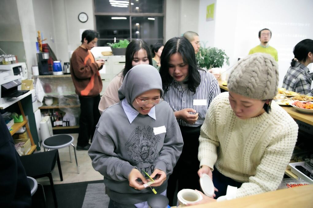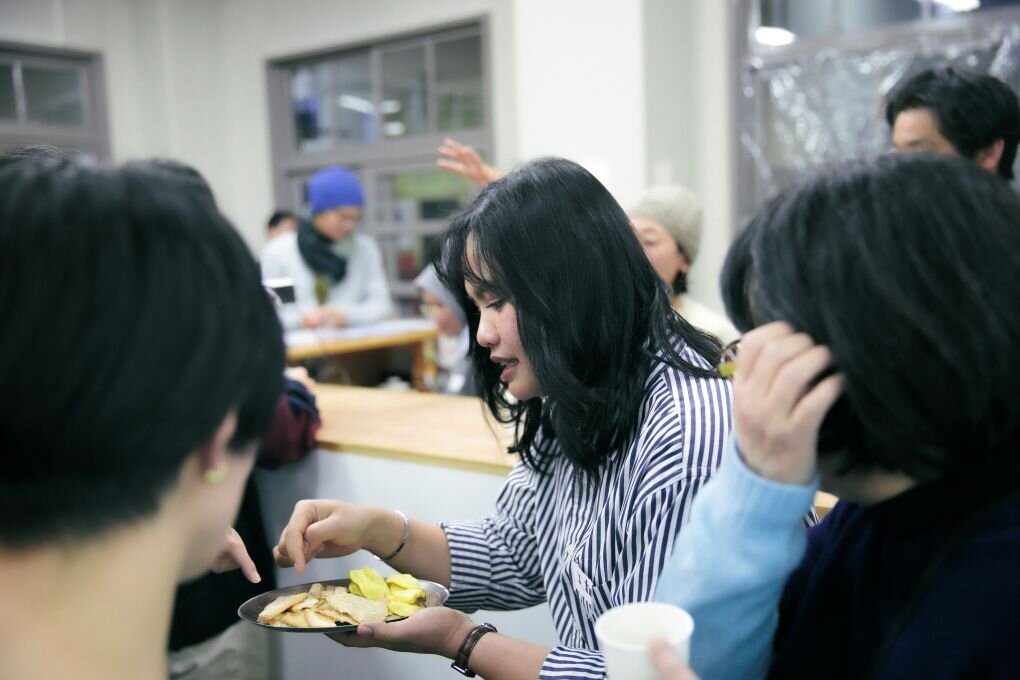2つ目は「自炊の会」です。実習生の母国料理を個人宅や、職場で、友人同士や同僚と一緒につくって食べる、というクローズドなかたちで開催されました。料理を共同作業と捉え、一緒につくり一緒に食べるという行為を共に行っていく中で、個々の人柄や考え方などもみえてきました。この暖かなつながり、楽しさ、面白さを地域の人たちにも体験してもらうためにはどうしたらいいか、さらに検討が重ねられました。