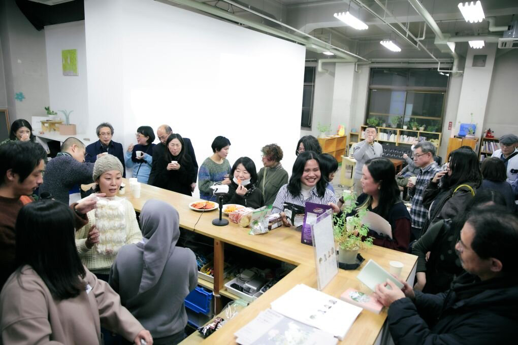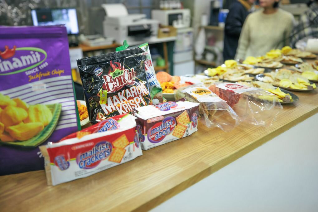 ディスカッションのあと、休憩時間にはゲストのお二人が招いた特定技能としてインドネシアから来ている3人がインドネシアのお茶をふるまってくれました。そのうちの1人、Eさんは愛知県の工場に勤務していますが、昨年まで土佐市に在住し「ごはんのかい」に参加していました。インドネシアのジャスミンティーに砂糖を入れた甘いお茶と、大須周辺のアジアンマーケットで購入したお菓子も一緒に楽しみました。
