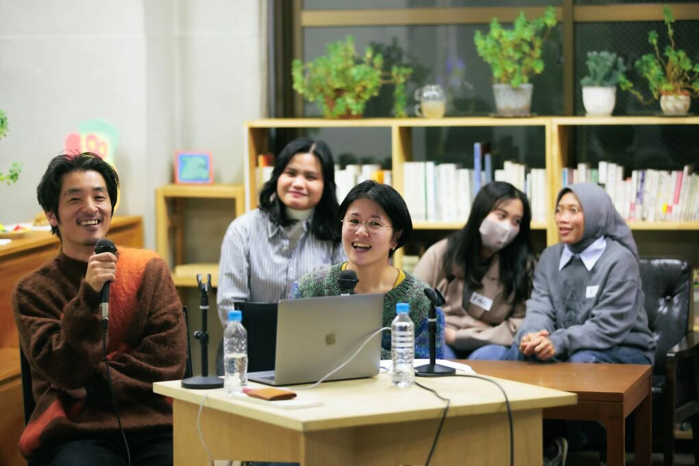 ほかにも、食べ物やボードゲーム、美術館、防災といったキーワードで話し合いが進んでいた様子がみられました。グループワーク後の共有時間では、参加者がインドネシアの方へインタビューする場面も。