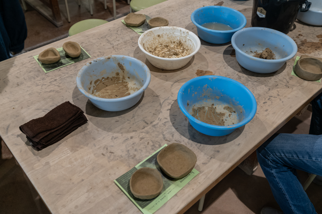 はじめは少しぼろぼろとした状態だった土に、水を少しずつ混ぜながら握っていくと、次第に表面が滑らかになり、もちもちとした質感に変わっていきます。自分の手の中で表情を変えていく様子が目から肌から感じられて、なんだか愛おしい気持ちにもなりました。
