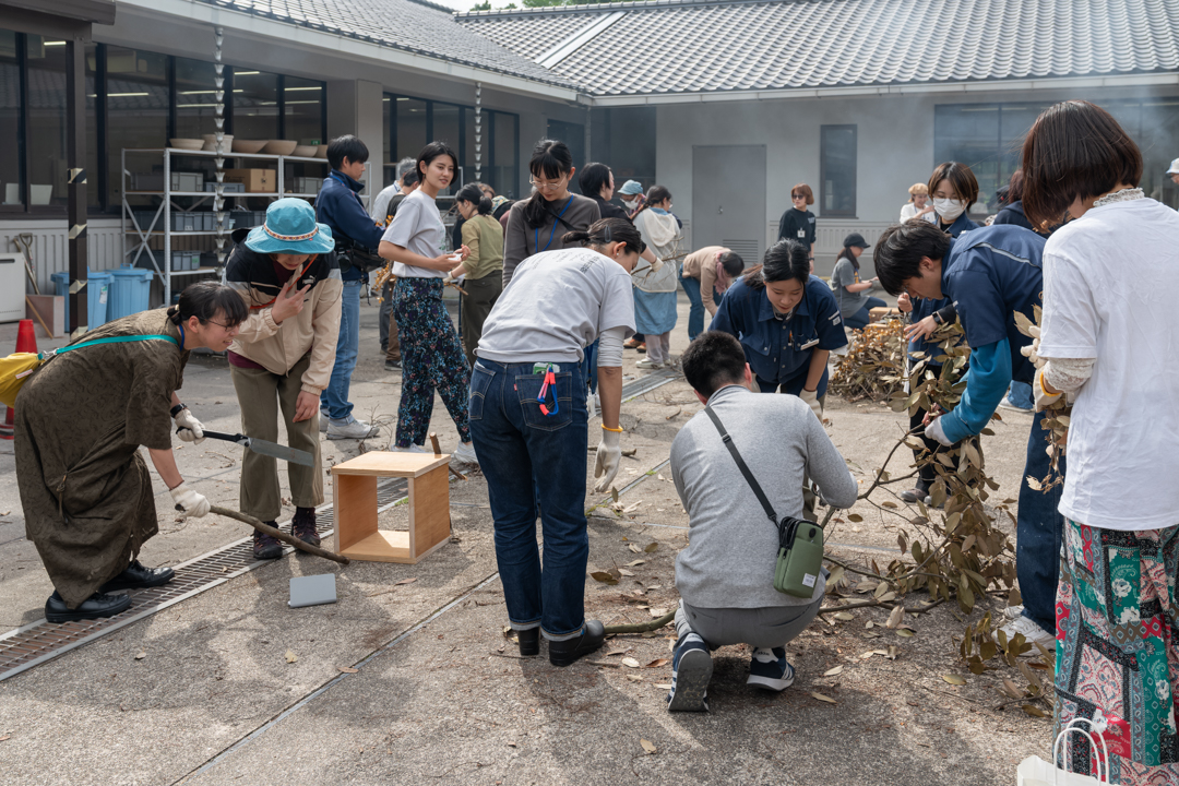 国際芸術祭「あいち2025」に向け「ラーニング」が企画する、「あいち2025」に通ずるテーマを参加者とともに考え深めていく「ラーニング・ラーニング」。2025年度も昨年度から引き続いて、「あいち2025」の会期前・会期中に開催していきます。第5回目は、「あいち2025」の会場でもある愛知県陶磁美術館と、「あいち2025」ラーニングチームのメンバーでありアーティストでもある村上慧さんとのコラボレーションによって開催されました。今回は灰をつくってみる、というボリュームのあるワークがメインとなった、木、土、火というやきものに欠かせない3つの要素を身体で体験する機会となりました。