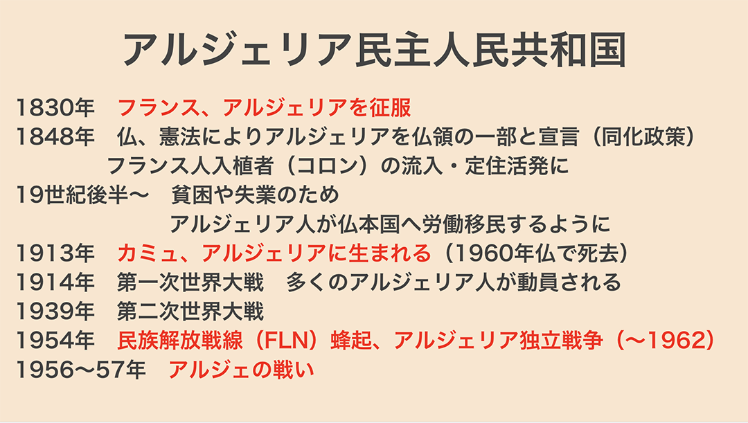 映画の内容を踏まえ、藤本さんからは作品の背景にも深く関わるアルジェリアの歴史的経緯についてお話しいただきました。