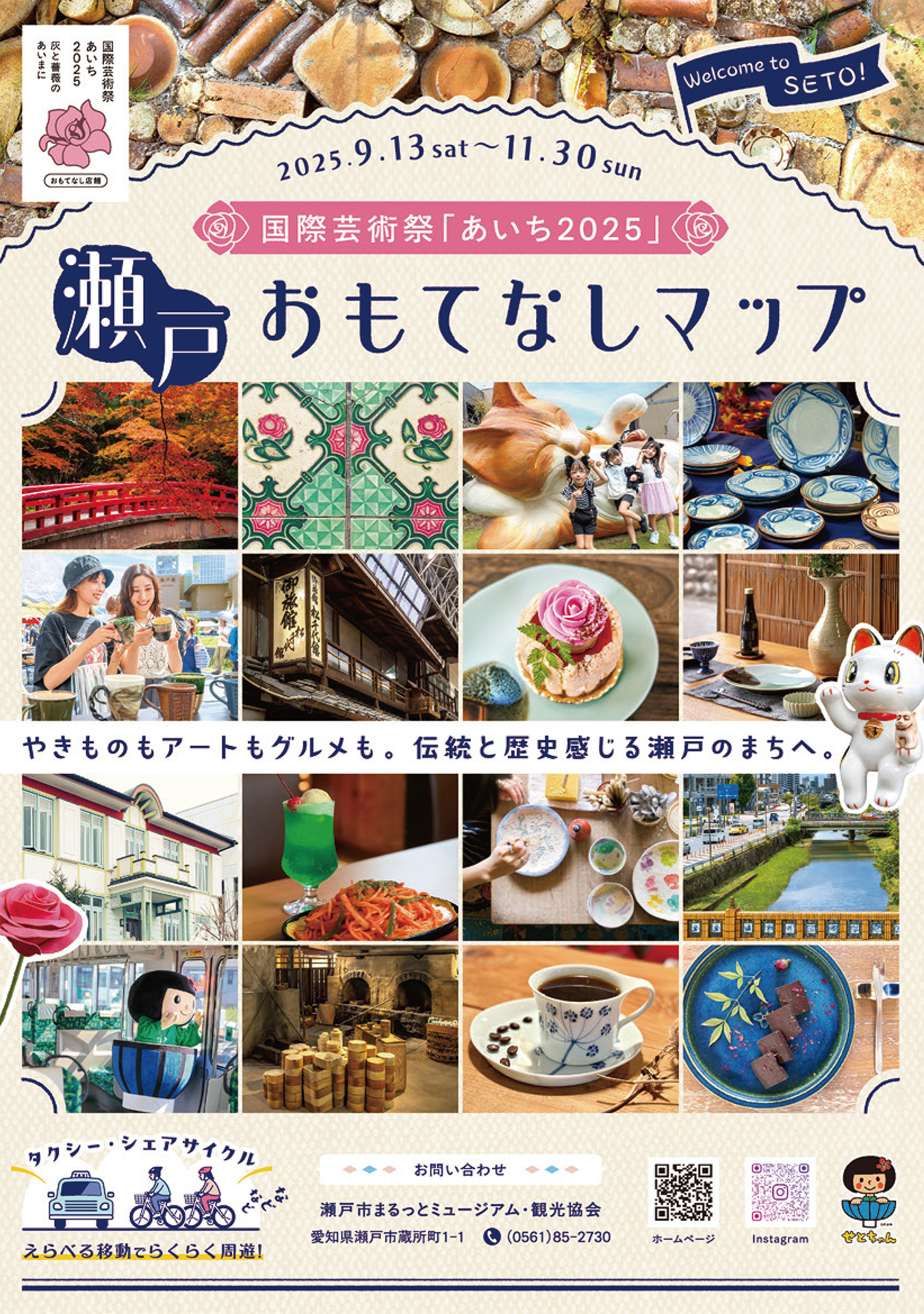 瀬戸市といえば、やきもののまち。やきものの専門店で買い物したり、陶磁器産地を感じられる散歩道を歩いたりして、芸術作品と一緒に瀬戸市を満喫してみよう!