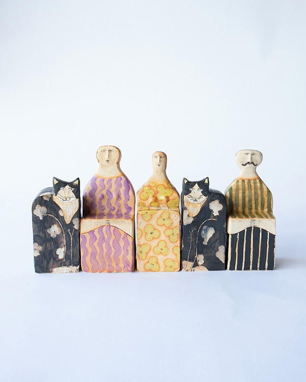 - 1981年京都生まれ。多摩美術大学大学院美術研究科版画専攻修了。木版画の様々な技法を用いながら、独自の世界を表現します。2016年より木彫刻の制作を始め、2020年からは岐阜県・多治見市に拠点を移し陶作品にも取り組んでいます。