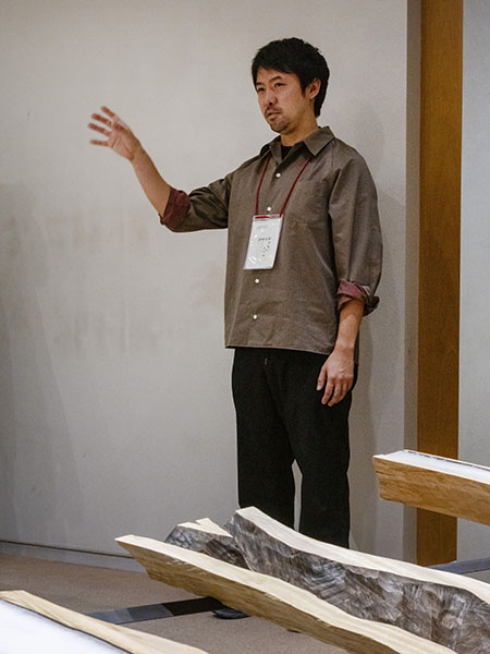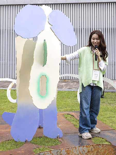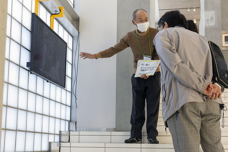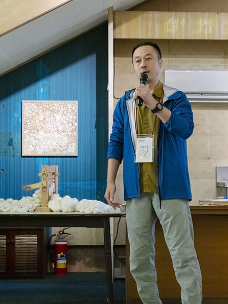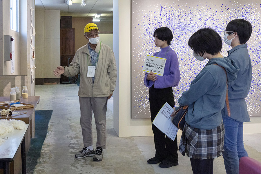 現代美術展の参加アーティストが自身の作品などについて解説しました。