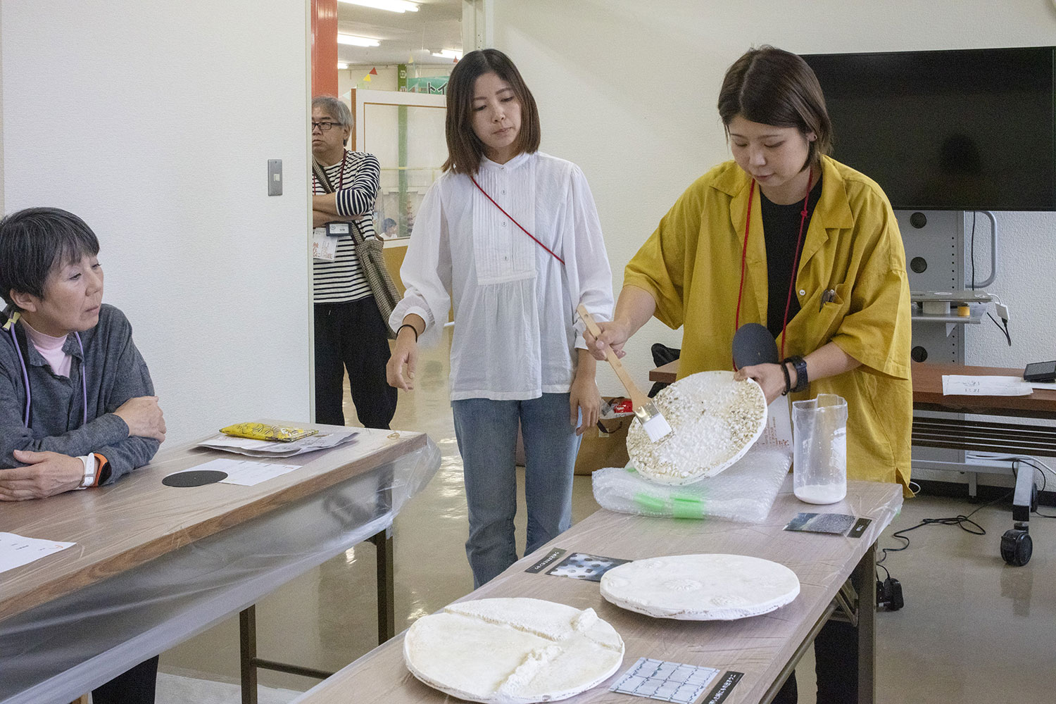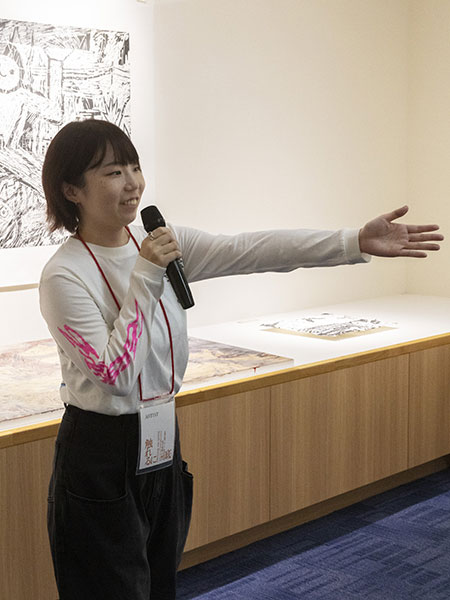 展覧会の参加アーティストが自身の作品などについて解説しました。