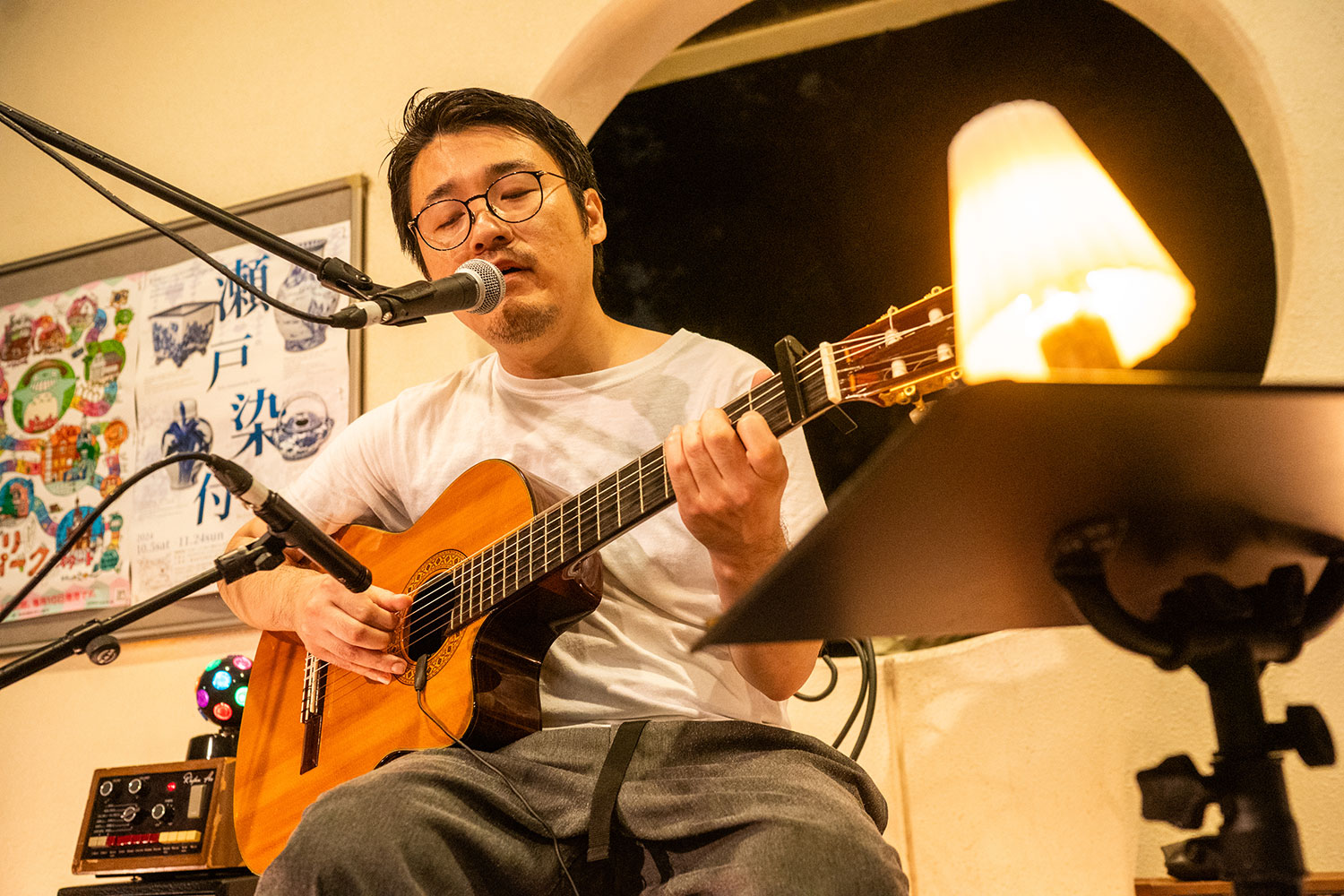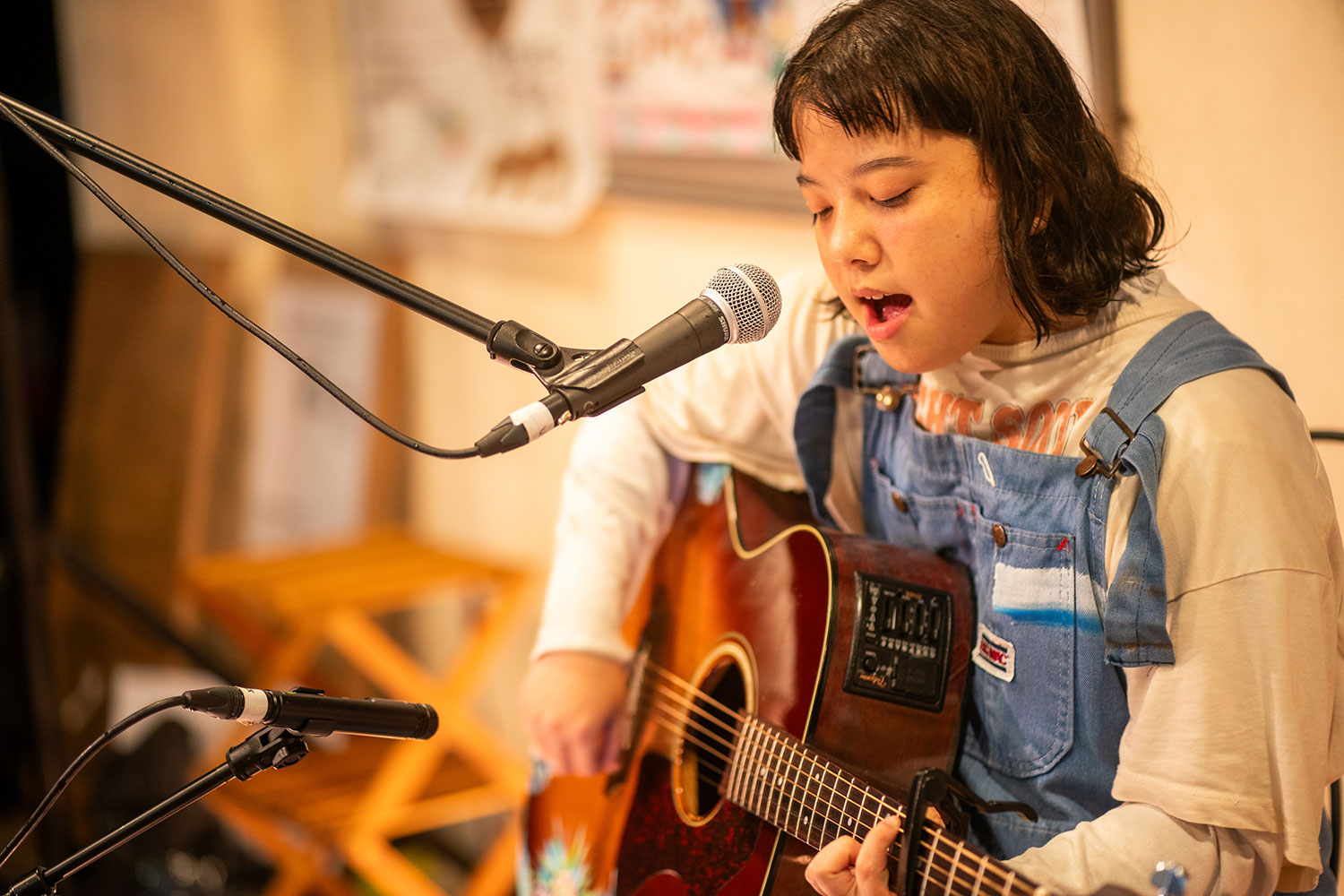 ギターを片手に英語と日本語を歌う。雲のように漂い、波のように感情的な歌声は、日常の喜びや人生の悲哀を感じさせ、ここではないどこかへと聴く人をいざなう。
