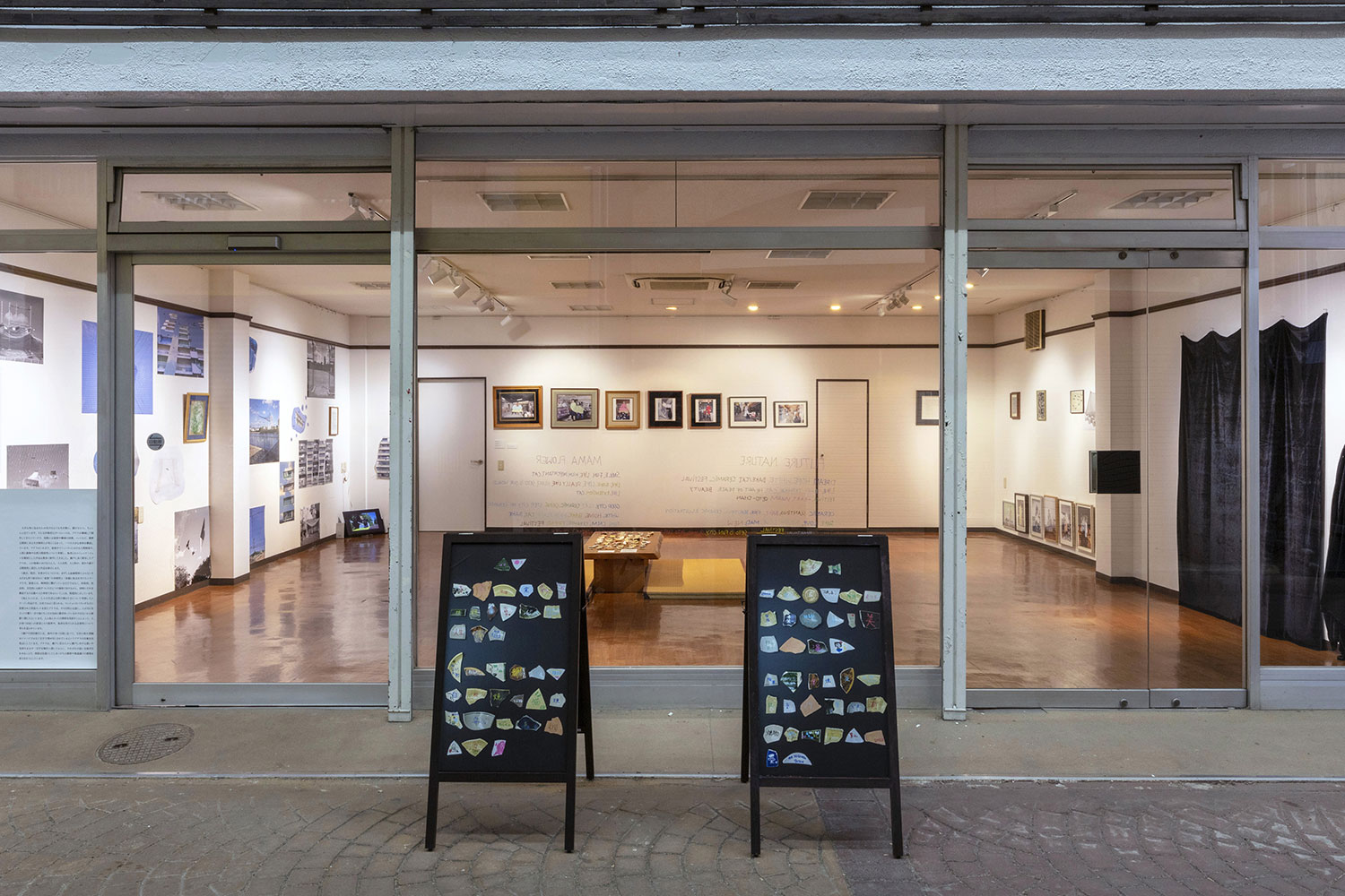いつまでも店内に置いておくわけにもいかないこうした食器類を、光岡は外へ持ち出し、できるだけ自由に任せて人々の生活のなかへと流通させようとします。来場者はここに並んだ食器を好き好きに持ち帰ることができ、包装紙に印刷されたテキストは、このアイデアが生まれた経緯を包み隠さず語っています。会期後半に全ての食器がなくなると、光岡は新たに「お皿を見られなかった人たちへ。」というテキストを配布し、このアイデアと遠く響き合うようなまちなかのスポットを紹介して来場者にまち歩きを促しました。