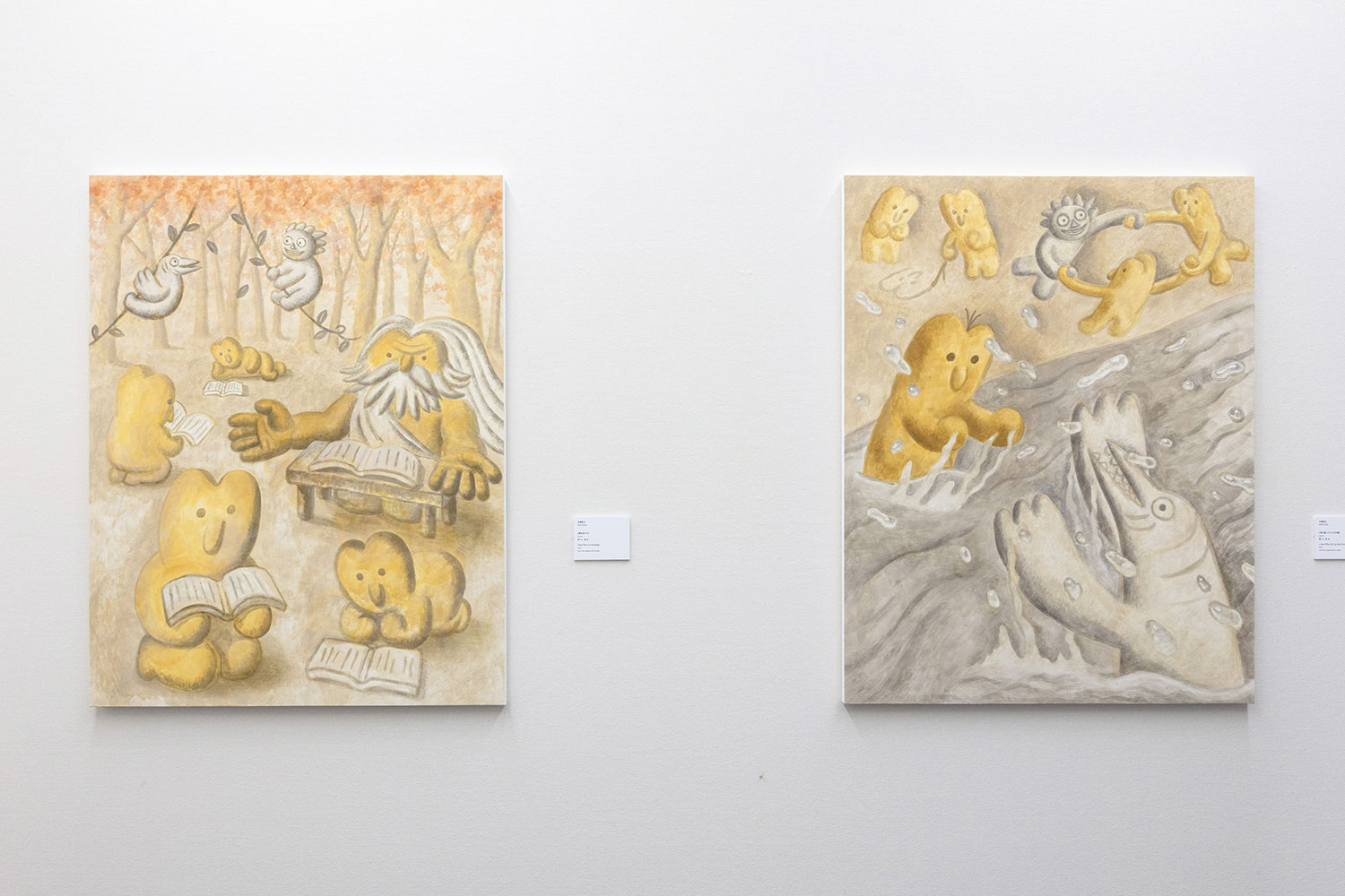 [左から]《愛知者たち》2024年、《毎日遊んでられる状態》2024年