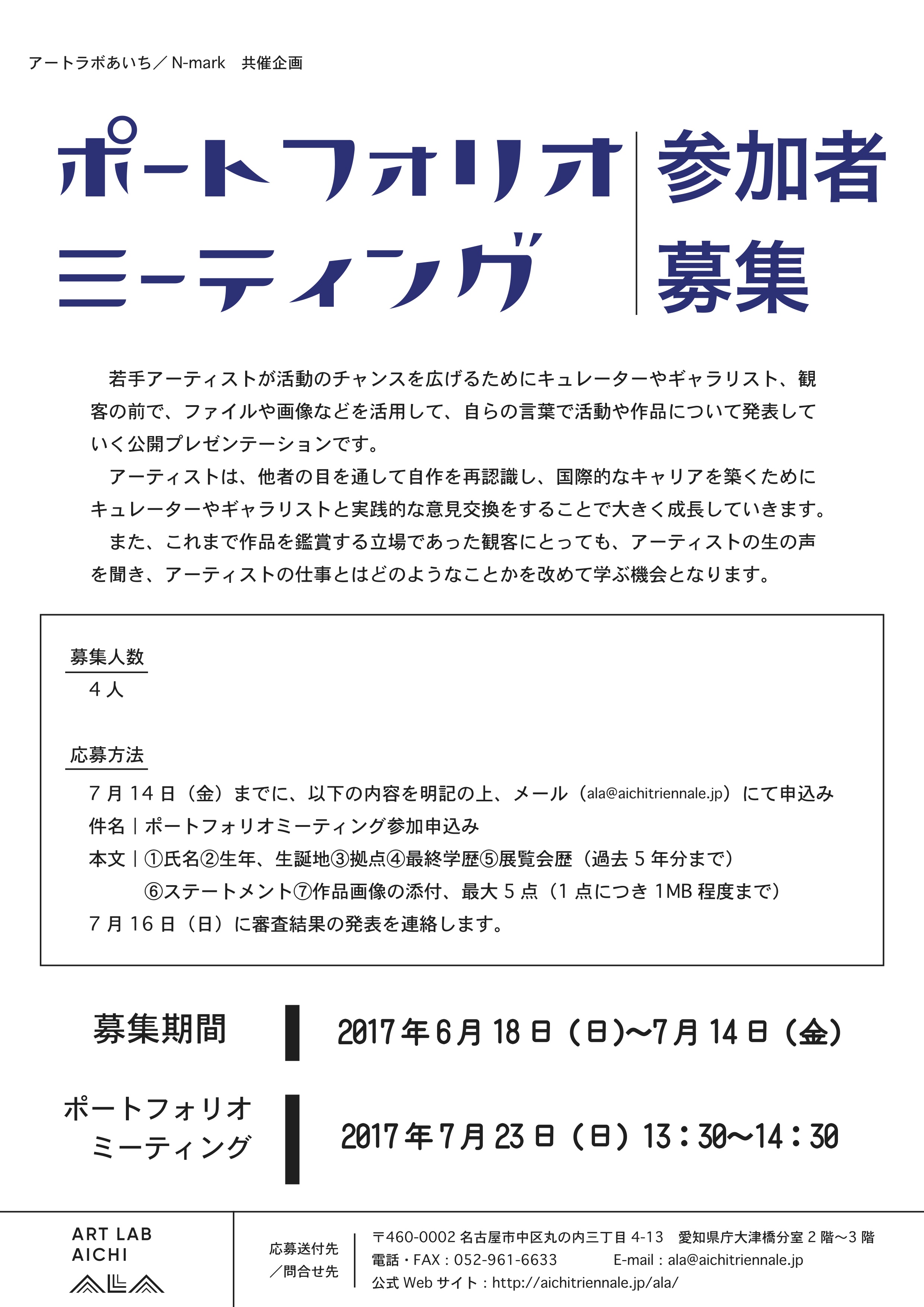 ポートフォリオミーティングへの参加アーティストを募集します。