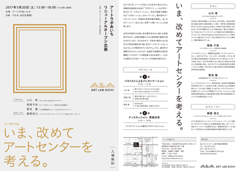 - 「アートラボあいち」がリニューアルオープンします。リニューアルオープン企画シンポジウム「いま、改めてアートセンターを考える」を開催します。