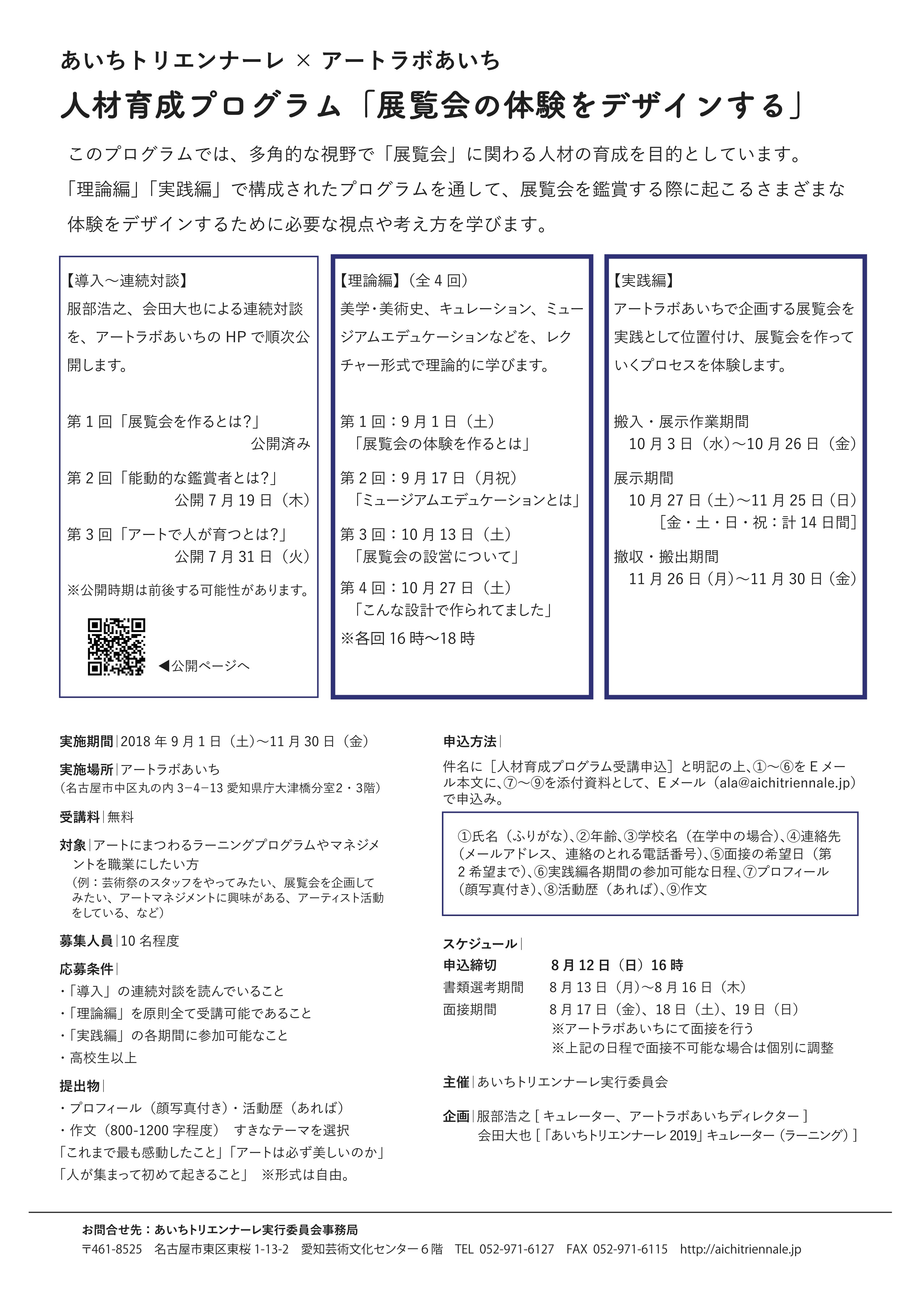 申込先|アートラボあいち「人材育成プログラム」係 ala@aichitriennale.art